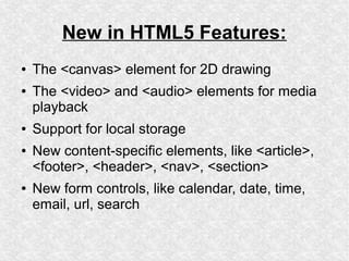 4-HTML5 Features and Semantic Elements | PDF | Html5 | World Wide Web