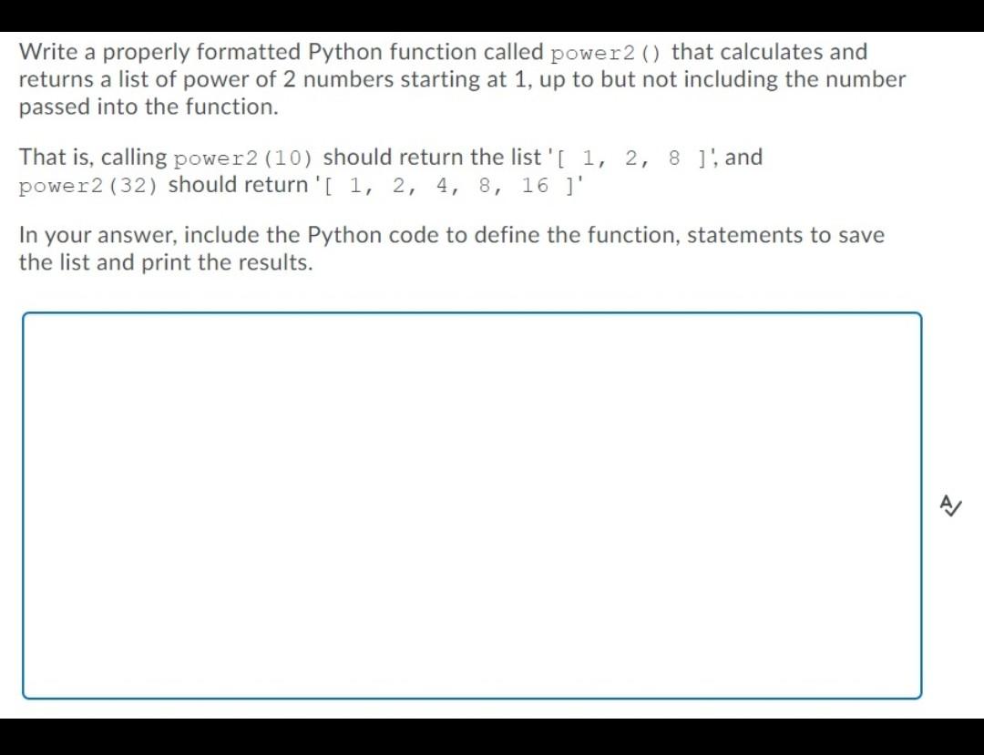 Solved Python 3 Write and test a function called pow2() | Chegg.com