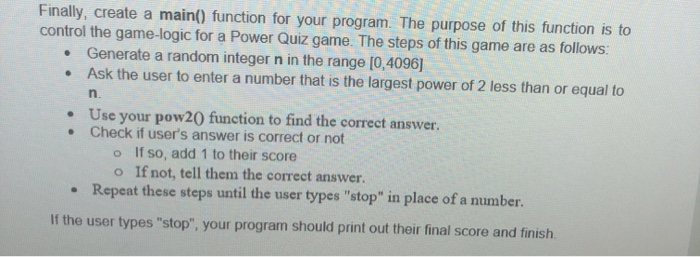 Solved Implement a function called pow_answer that has 2 | Chegg.com