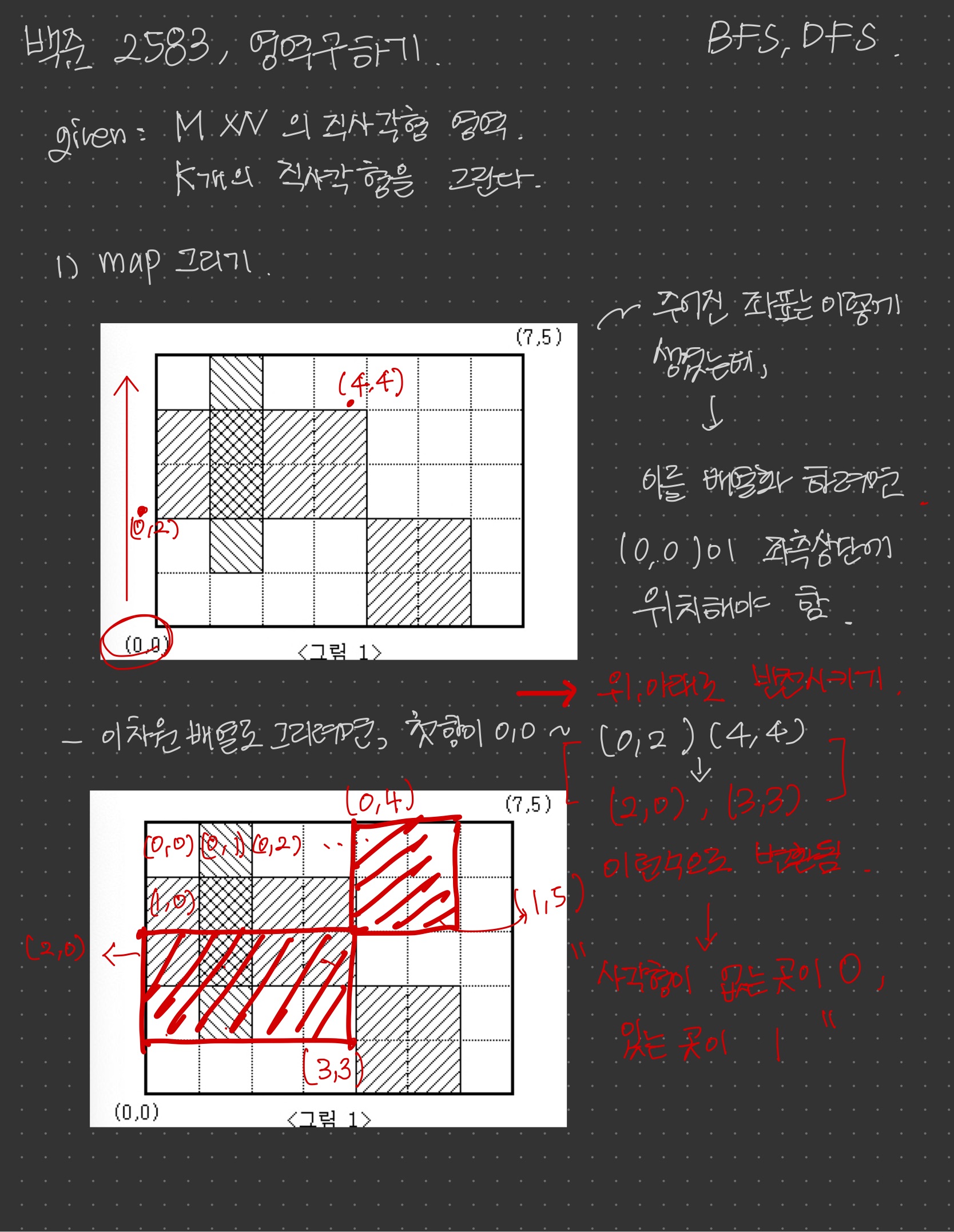 백준, 2583 영역구하기 javascript