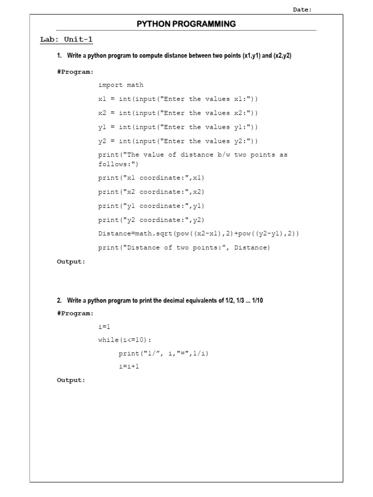 Python Programming Lab Manual (Solved) | PDF | Area | Passbook