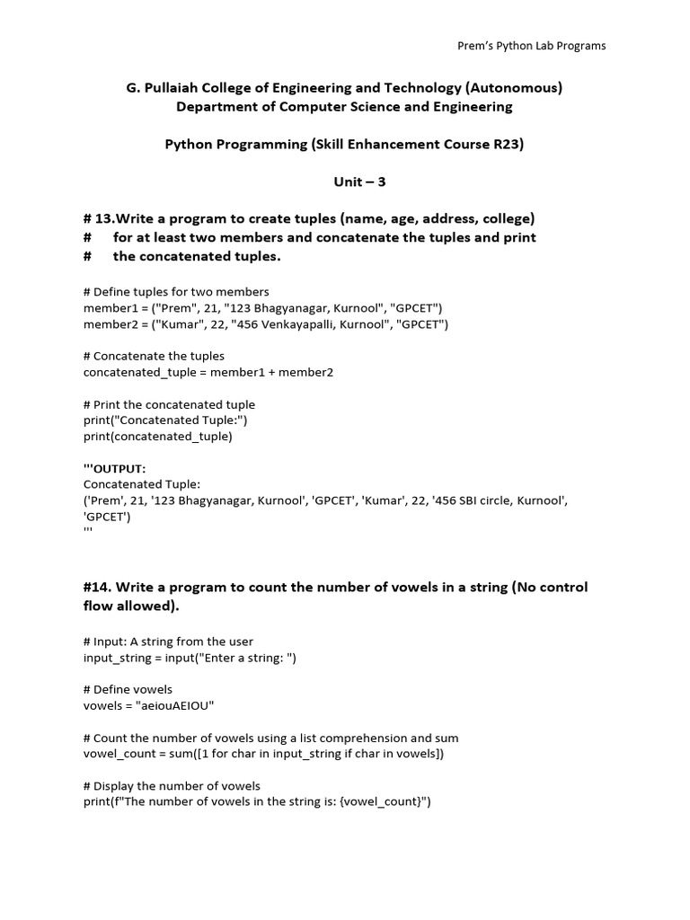 Python lab manual for 3rd sem BCA - CA-C15L: PYTHON PROGRAMMING LAB 1 ...