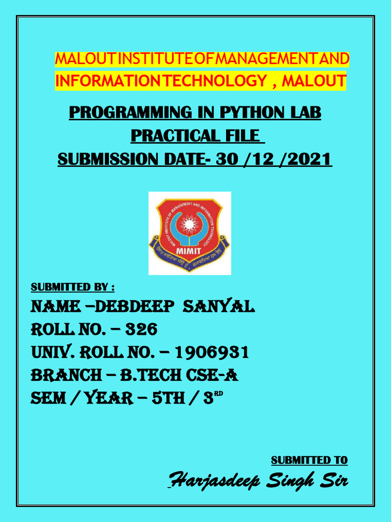 Python LAB.pdf - Programming in Python - LAB Submitted by Kochcherla ...