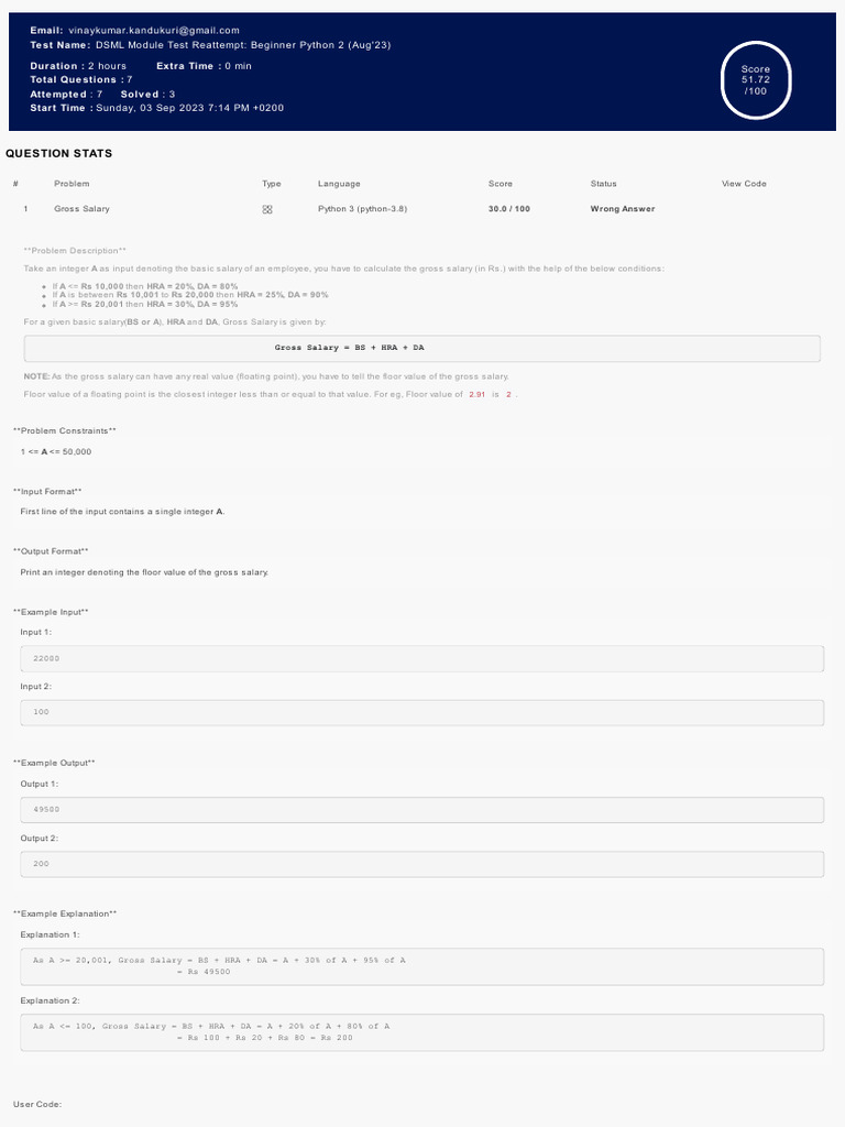 DSML Module Test Reattempt Beginner Python 2 Aug23 - Vinay Kumar ...