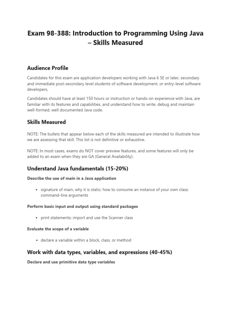Exam 98 388 Introduction To Programming Using Java Skills Measured ...
