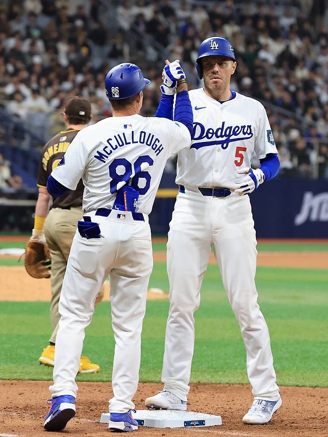 [서울 시리즈] 글러브 끈 '뚝!'에 역전타...LA 다저스, 행운 덕 라이벌 매치 역전승