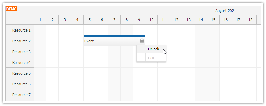 JavaScript Scheduler: Lock Events using Context Menu | DayPilot Code