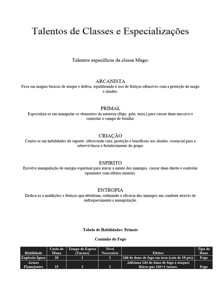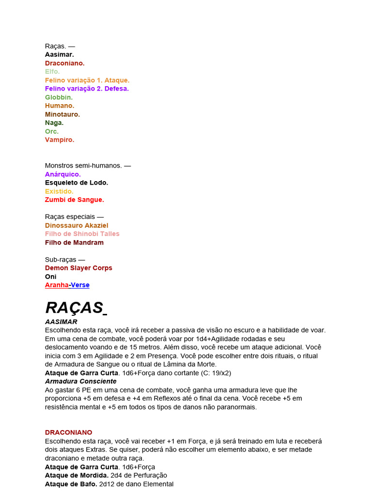 Sistema de Classes, Raças e Subclasses para RPG. | PDF | Simbiose | Aranha