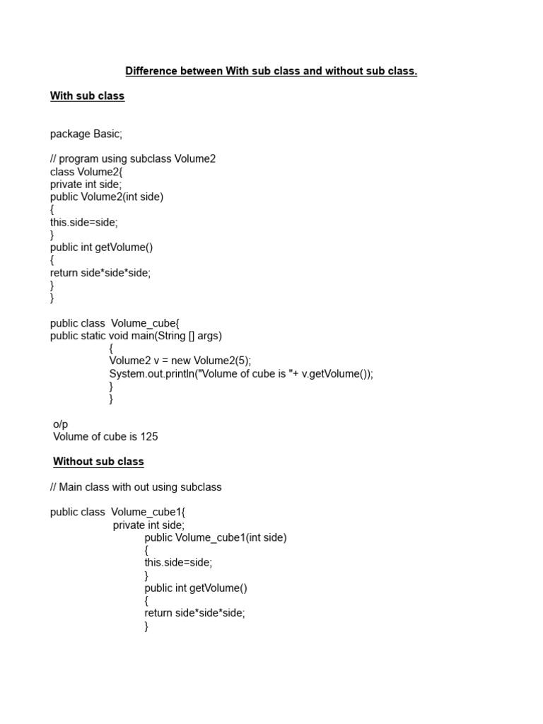 Difference Between With Sub Class and Without Sub Class | PDF | Class ...