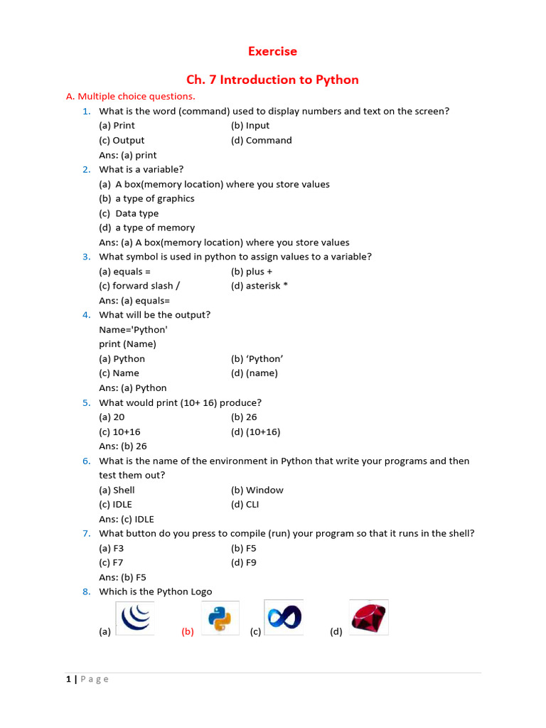 Answer Key Python Class 7 | PDF | Variable (Computer Science ...