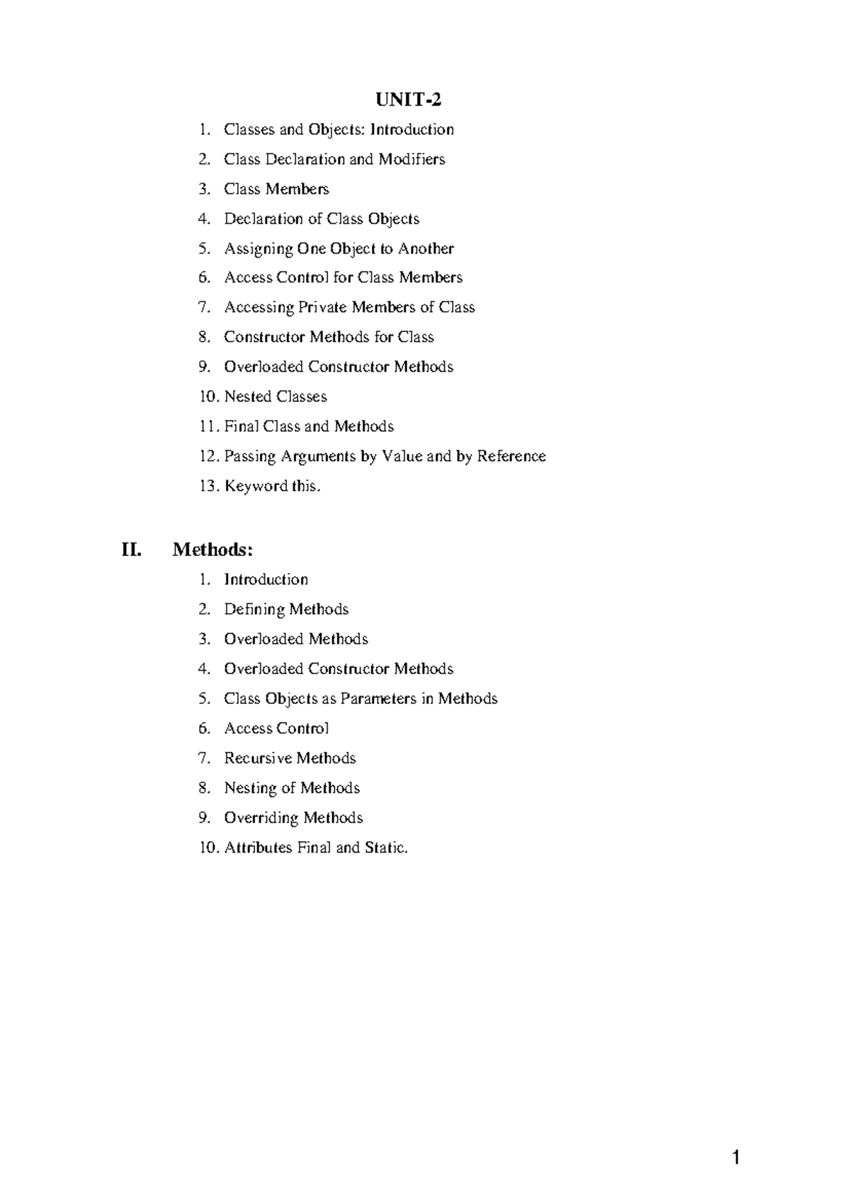 JAVA Unit-2 - well - OOPS Through JAVA Unit- 2 Classes: Class ...