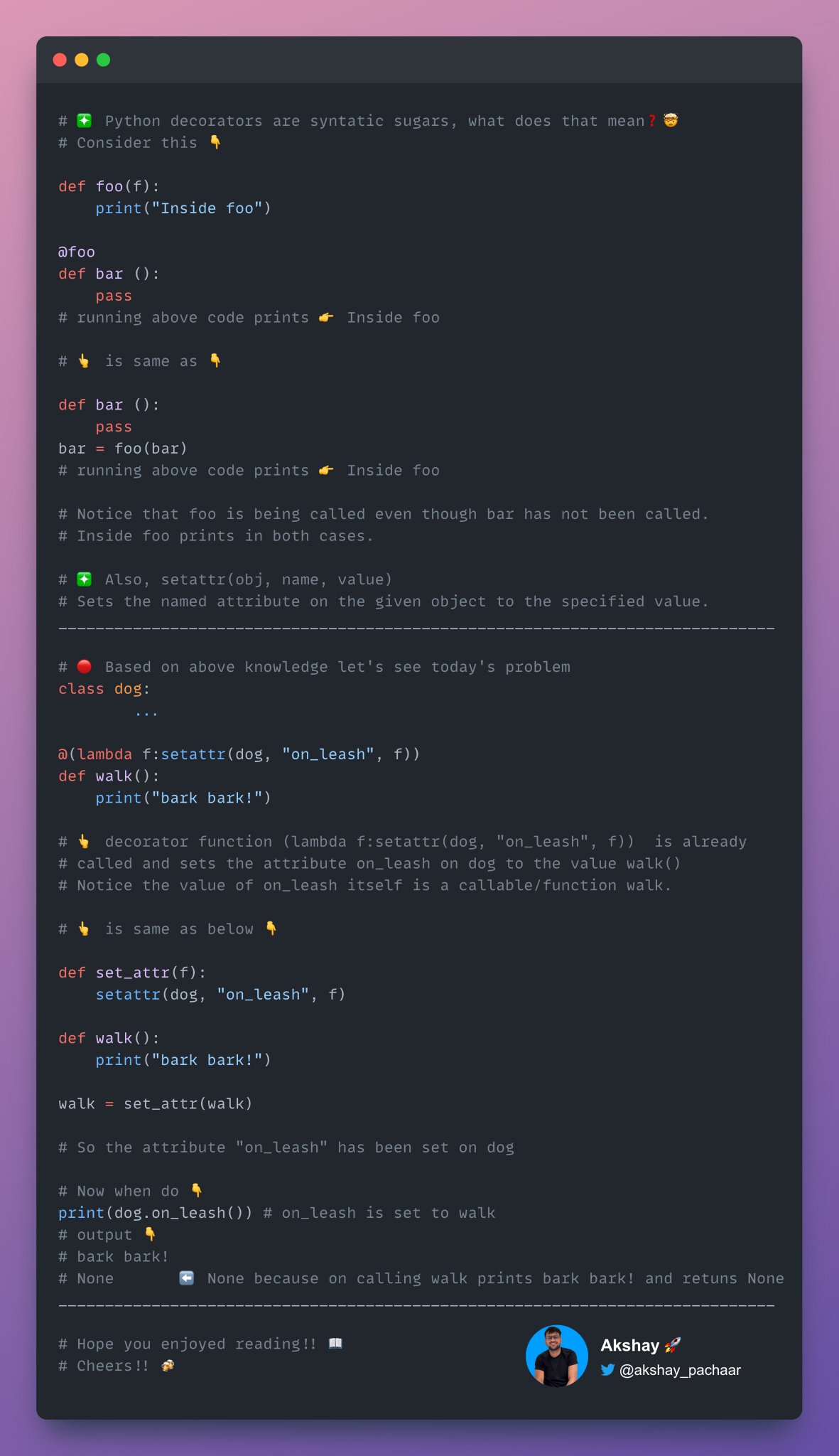 Akshay ๐ on Twitter: "@driscollis A nice primer on Python Decorators! I ...