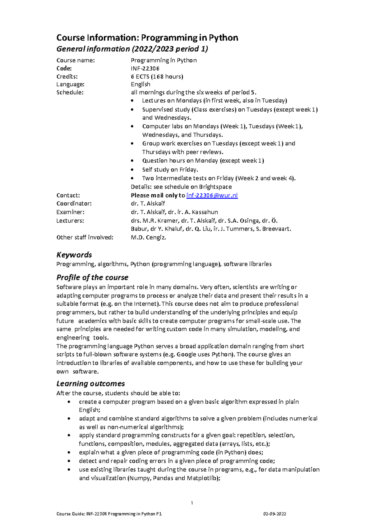 Course Guide INF 22306 Programming in Python 2022-2023 P1 - Studeersnel