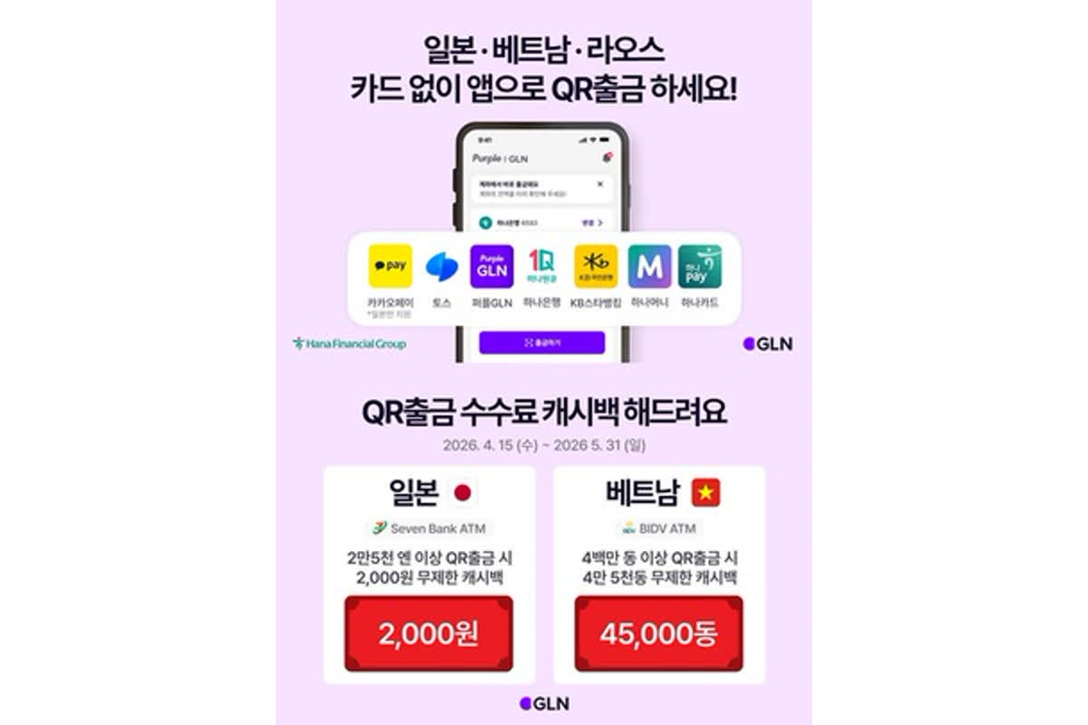 GLN, 日·베트남·라오스 해외 QR출금 서비스 확대