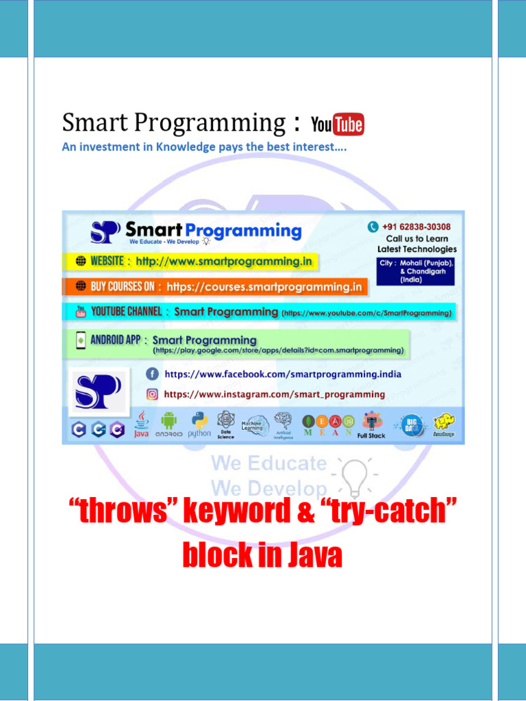 Throws Keyword and Try Catch Block in Java by Deepak Smart Programming ...