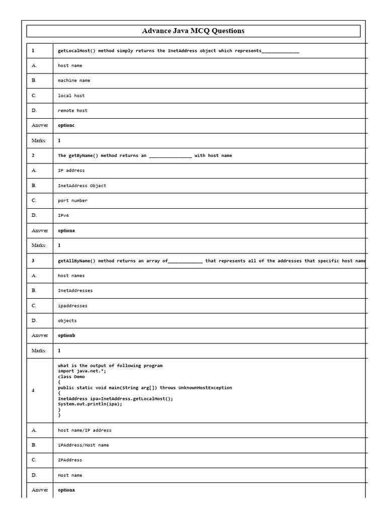 Advanced Java JDBC MCQs | PDF | Port (Computer Networking) | Network Socket