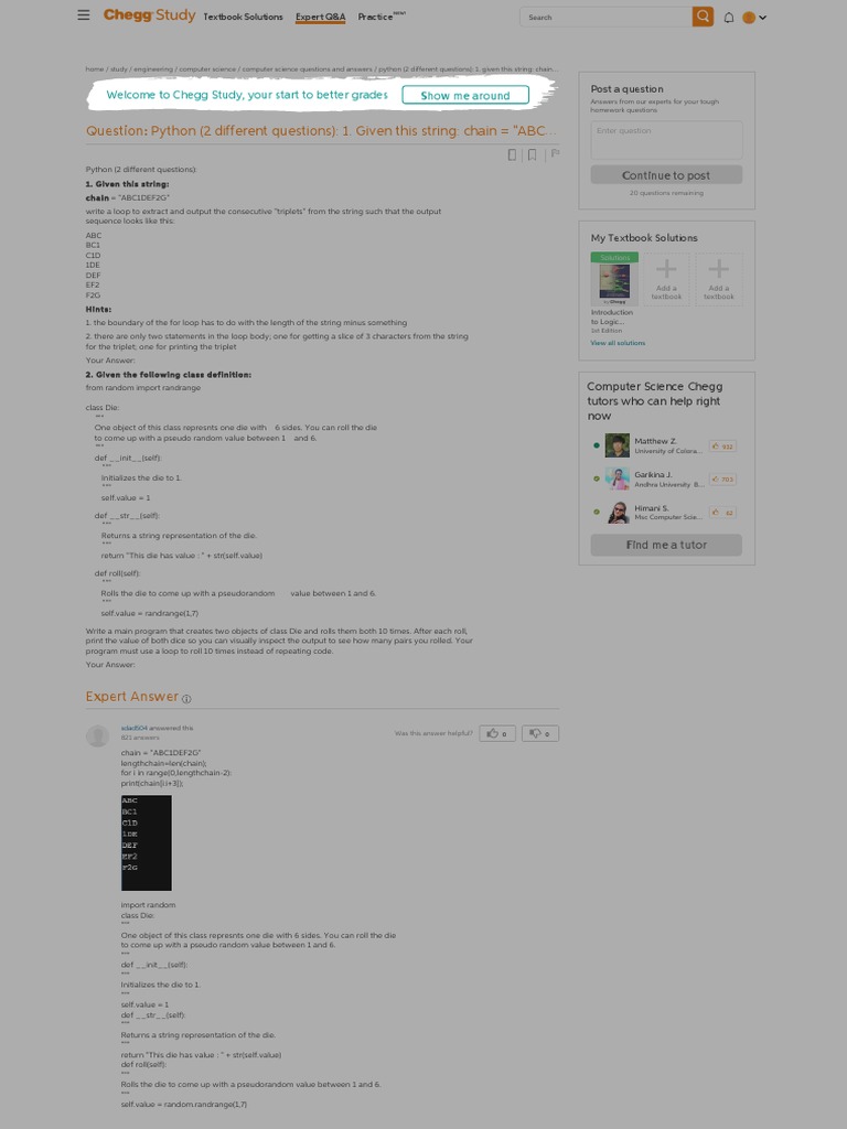 Screencapture Chegg Homework Help Questions and Answers 3 Write Program ...