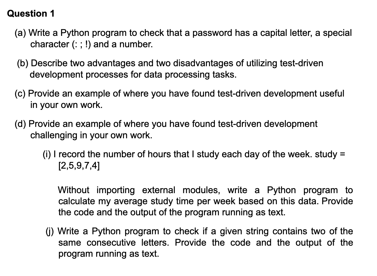 Solved Question 1 (a) Write a Python program to check that a | Chegg.com