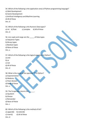Unit-1 Python Basic MCQ with Answers - • Python Basic MCQ with Answers ...