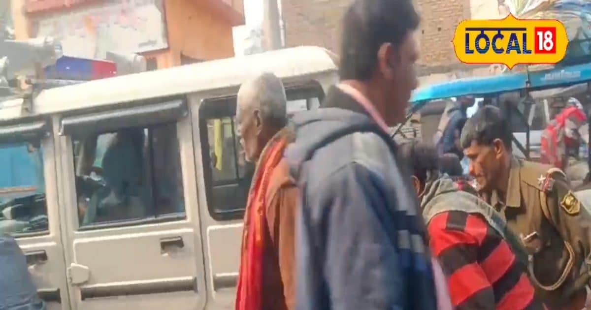 धक्का मार जीप के भरोसे बिहार पुलिस, घाट पुल के समीप बीच जाम में बंद हो ...