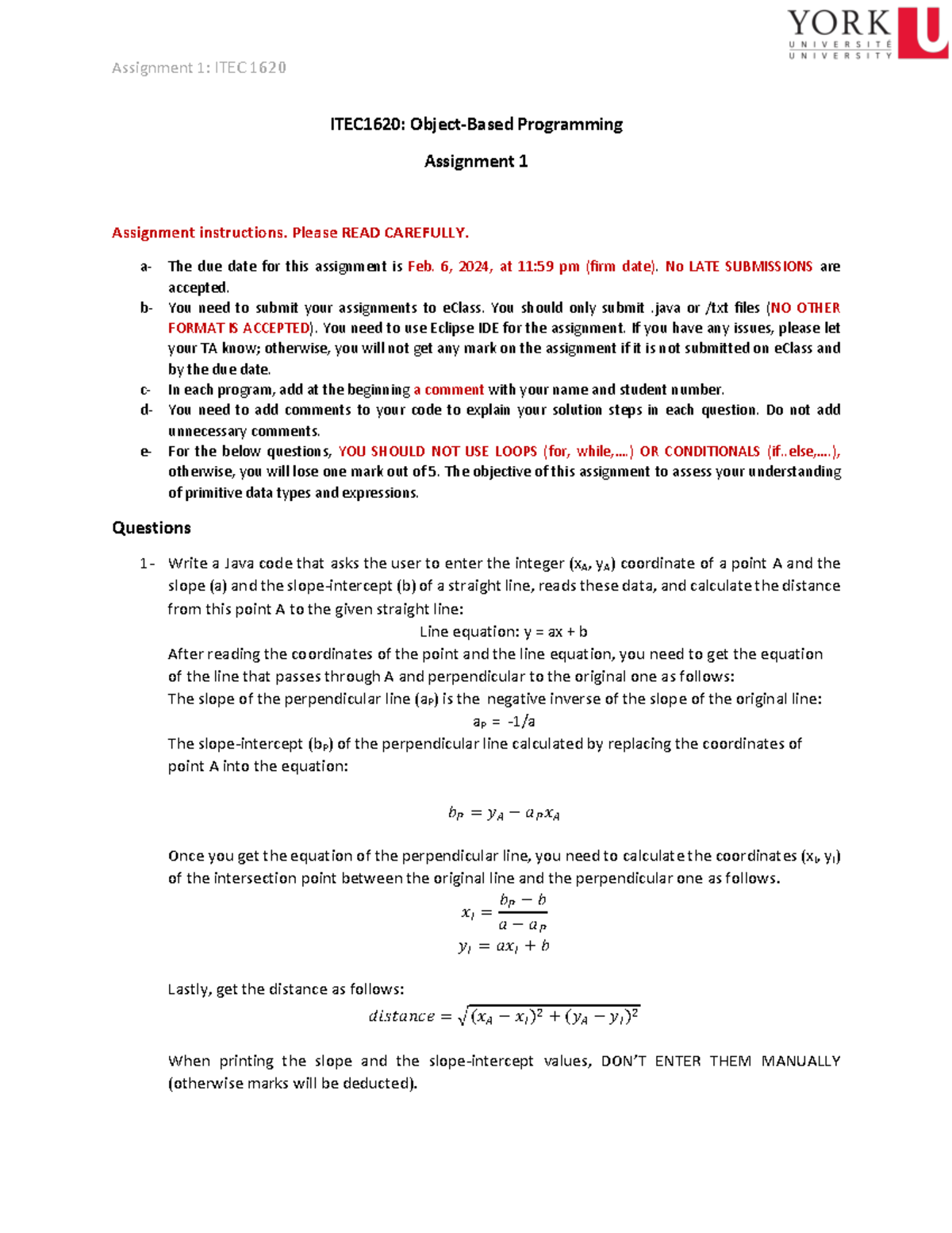 Solution Assignment 1 - Ap/Itec 1620 - Yorku - Studocu