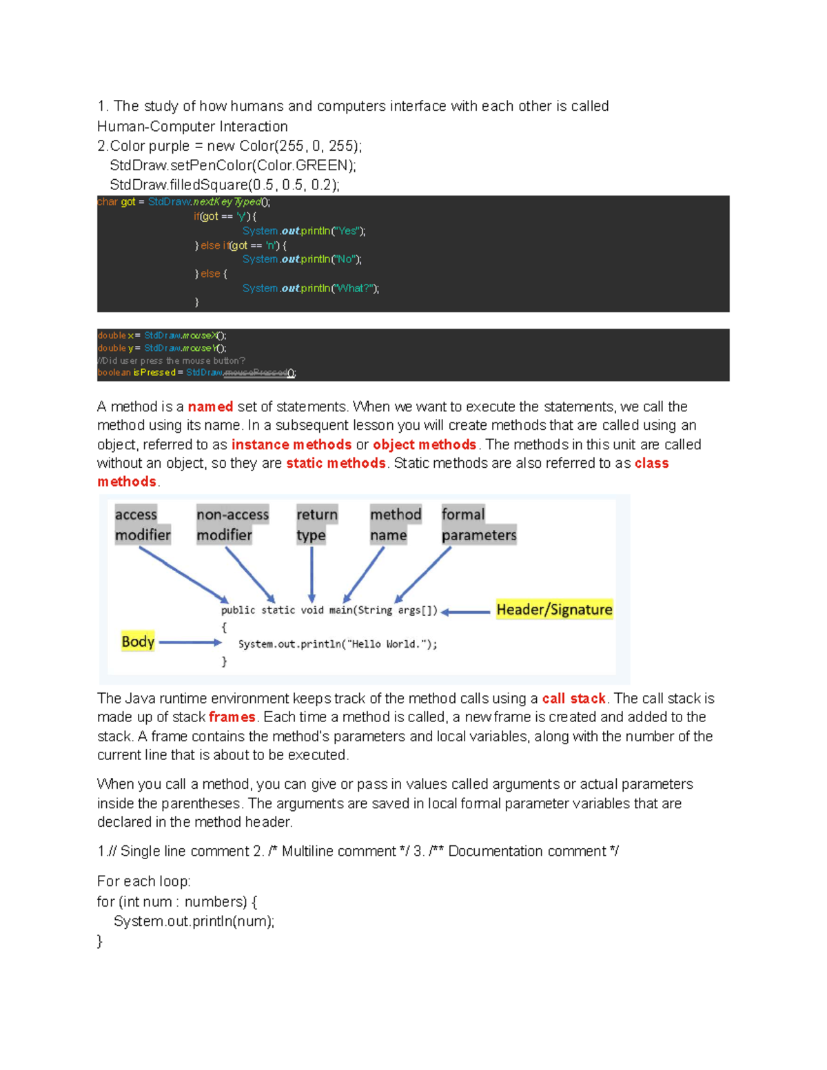 Java Final Exam Notes With Code Samples Final | PDF | Computer Science ...