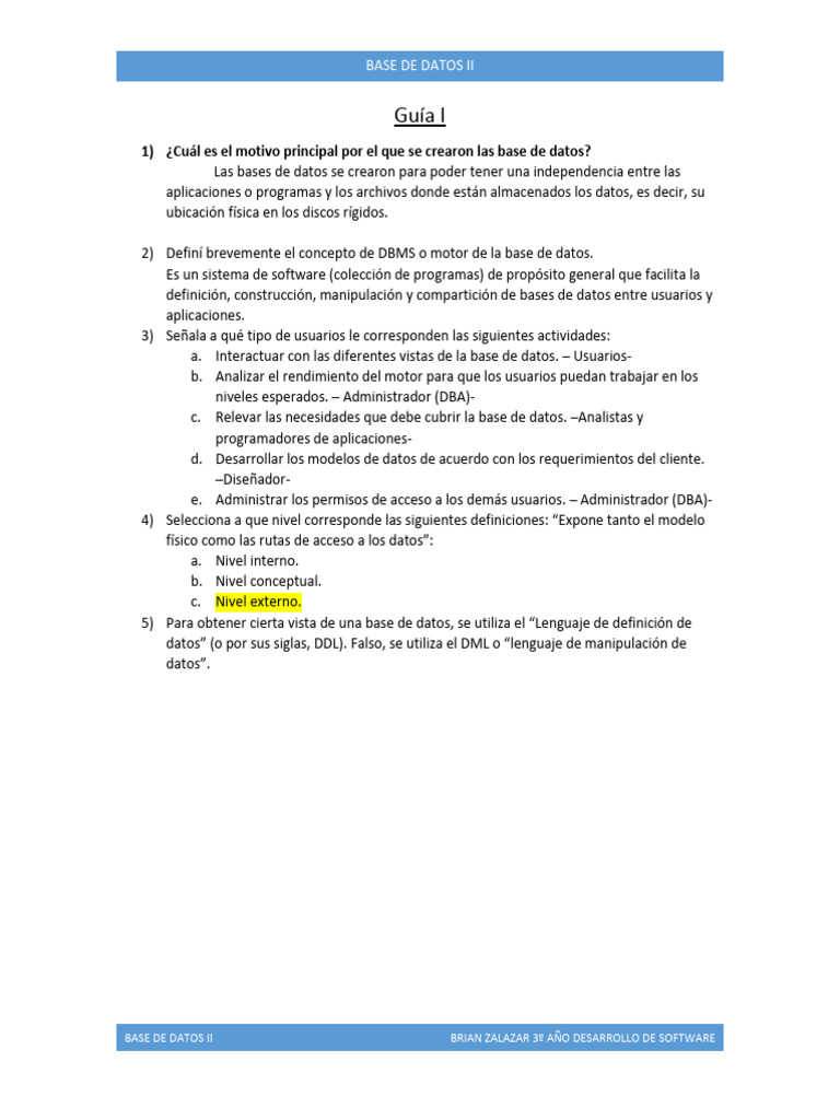 1 Guía de Estudio Introducción A Las Bases de Datos | PDF | Bases de ...
