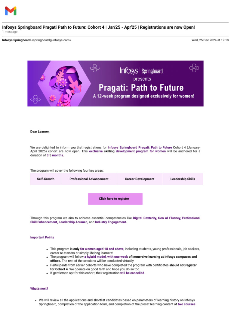 Infosys Springboard Pragati - Path To Future - Apr'25 - Jul'25 (Cohort ...