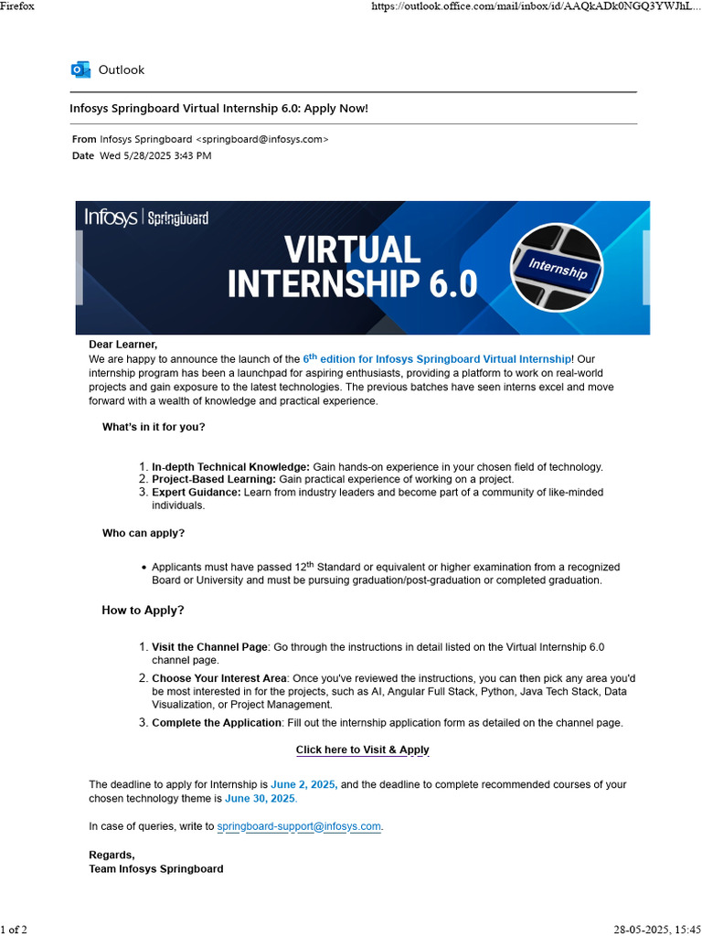 Infosys Springboard Internship 5.0 Batch 1 Offer Letter Session On ...