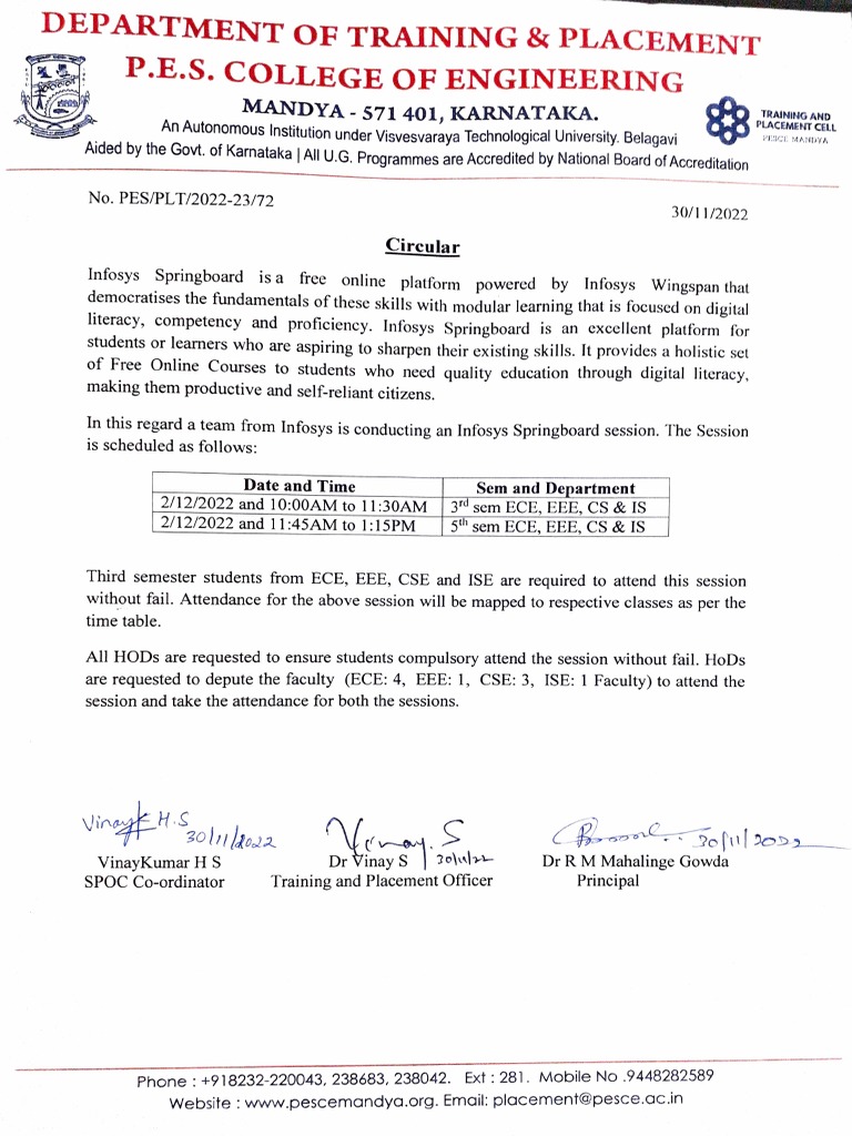 Infosys Springboard Session Announcement | PDF | Behavior Modification ...