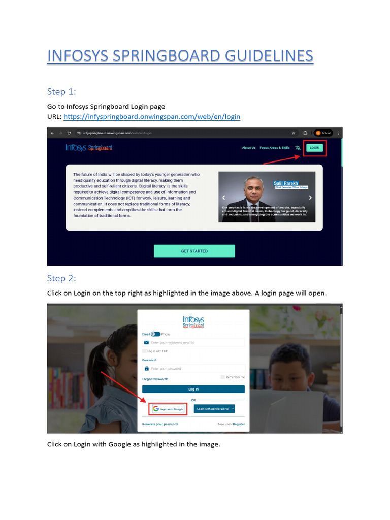 Steps To Register For Infosys Springboard | PDF