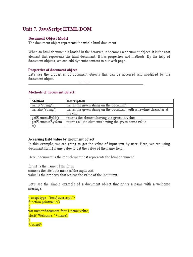 Unit 7. Javascript HTML Dom: Document Object Model | PDF | Document ...