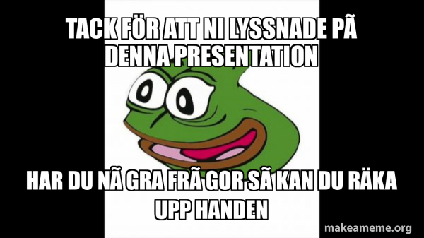 Tack för att ni lyssnat på min presentation! Frã gor? Meme Generator