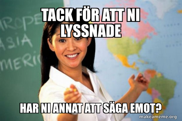 TACK FÖR ATT NI LYSSNADE HAR NI ANNAT ATT SÄGA EMOT? - Unhelpful High ...