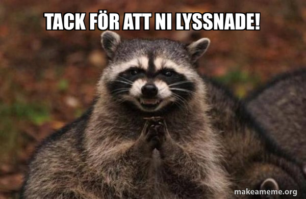 tack för att ni lyssnade! - Evil Plotting Raccoon Meme Generator