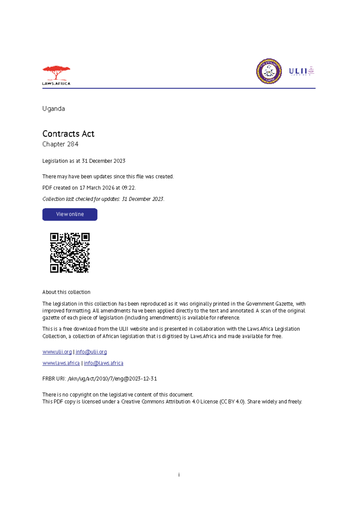 Uganda Contracts Act Chapter 284: Legislation Update as of Dec 2023 ...