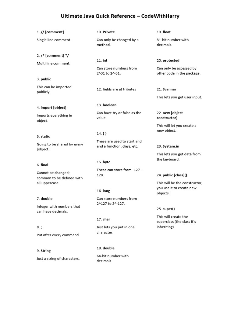 Java Cheatsheet for Web Developers. #Java #webdev #webdevelopers # ...