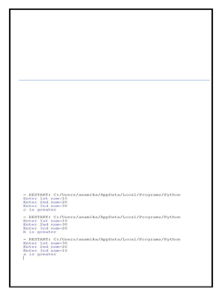 Greatest Number Program in Python | PDF