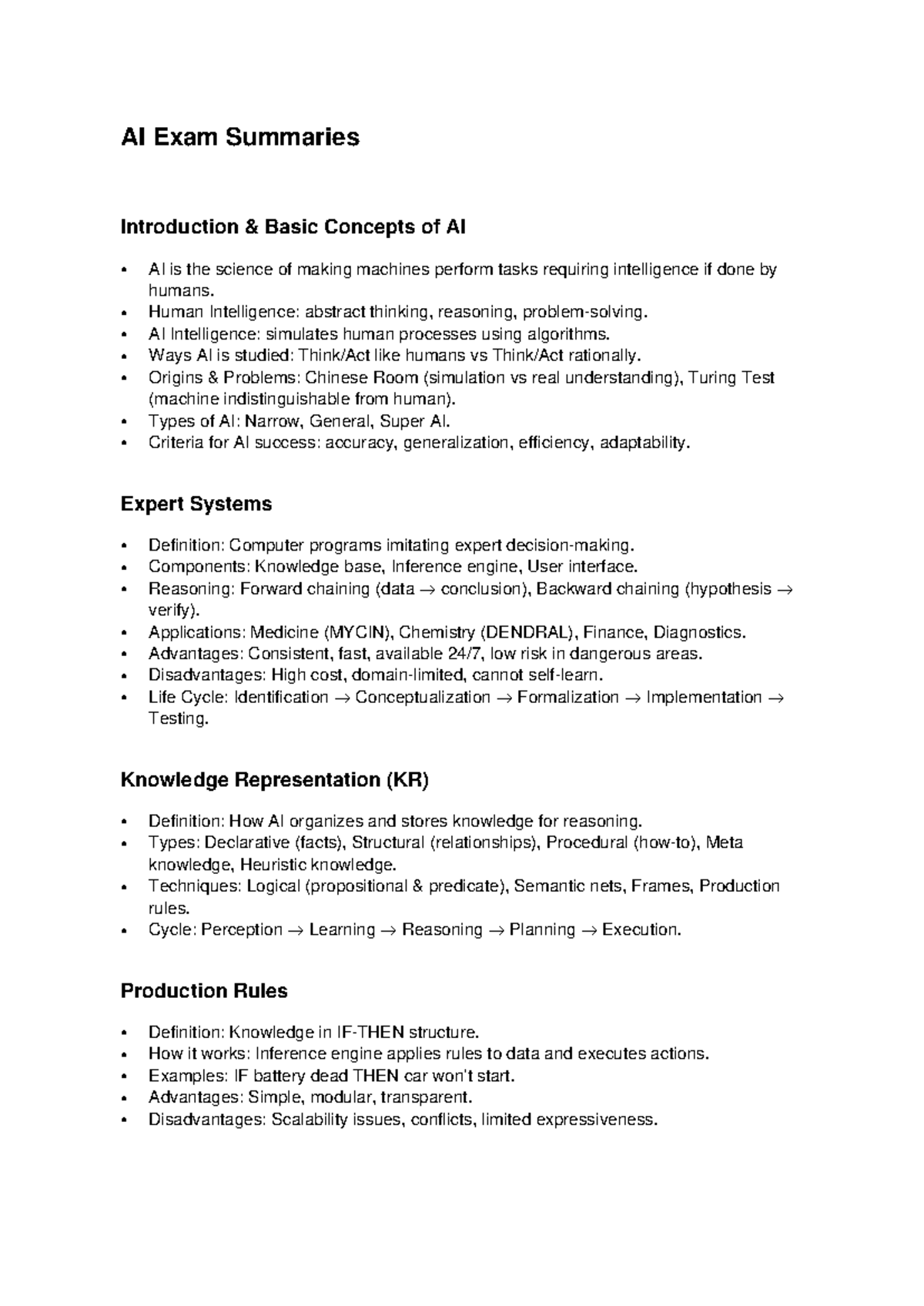 AI Exam Summaries - Key Concepts and Applications of AI - Studocu