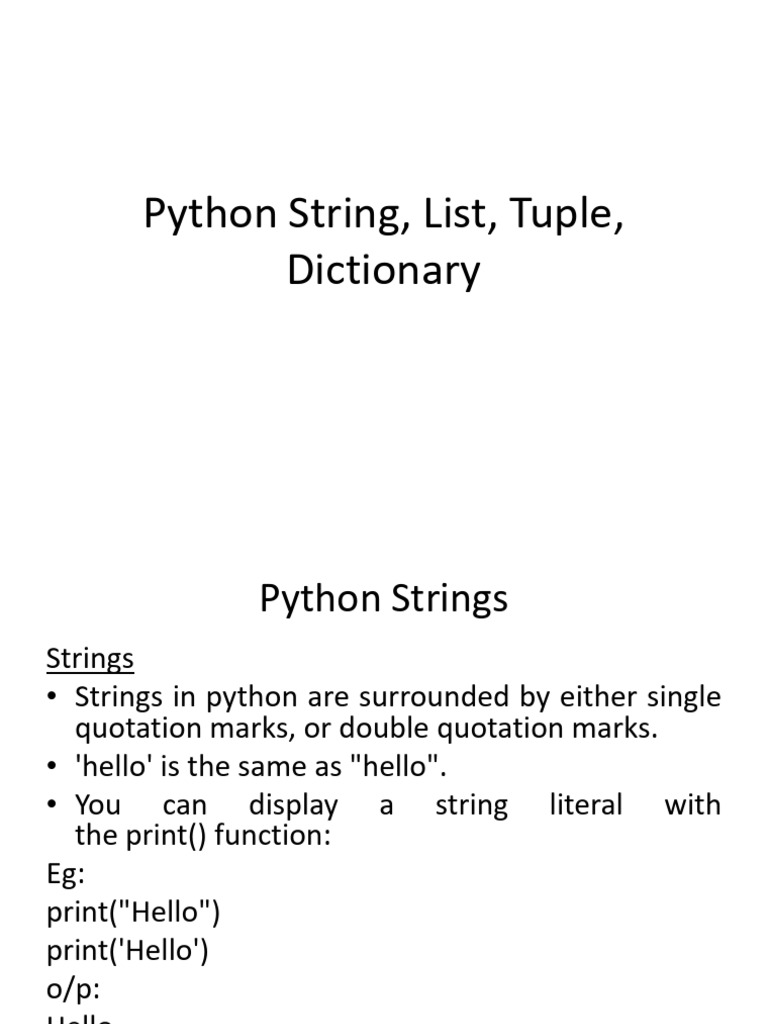 Notes - Strings, List, Tuple, Dictionary | PDF | String (Computer ...