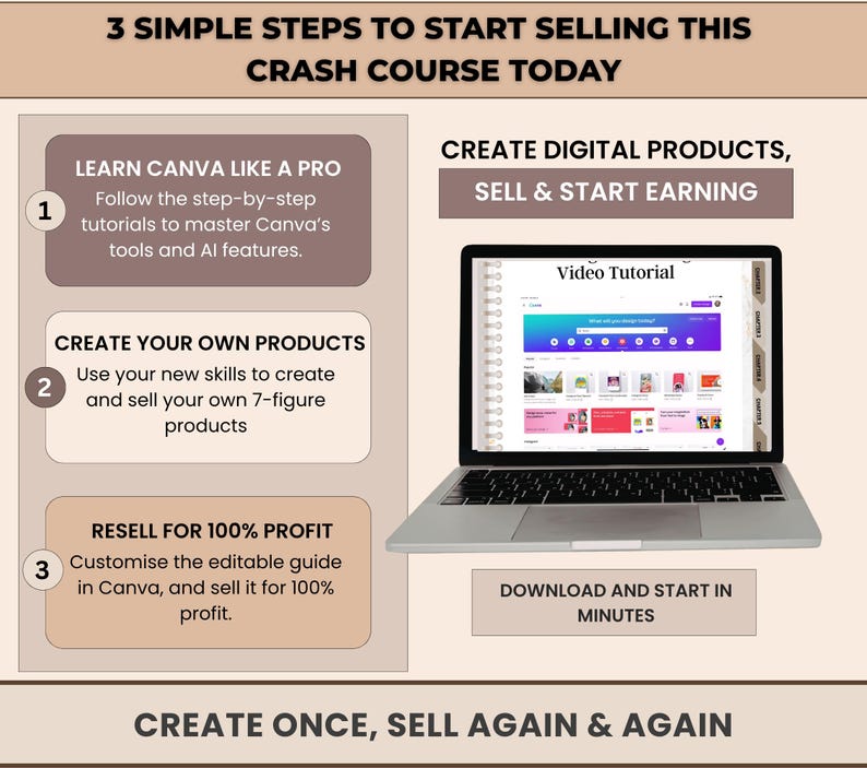 Based on this image's title: “Canva Course for Beginners Step by Step Learn Canva Fast Create & Sell ...”