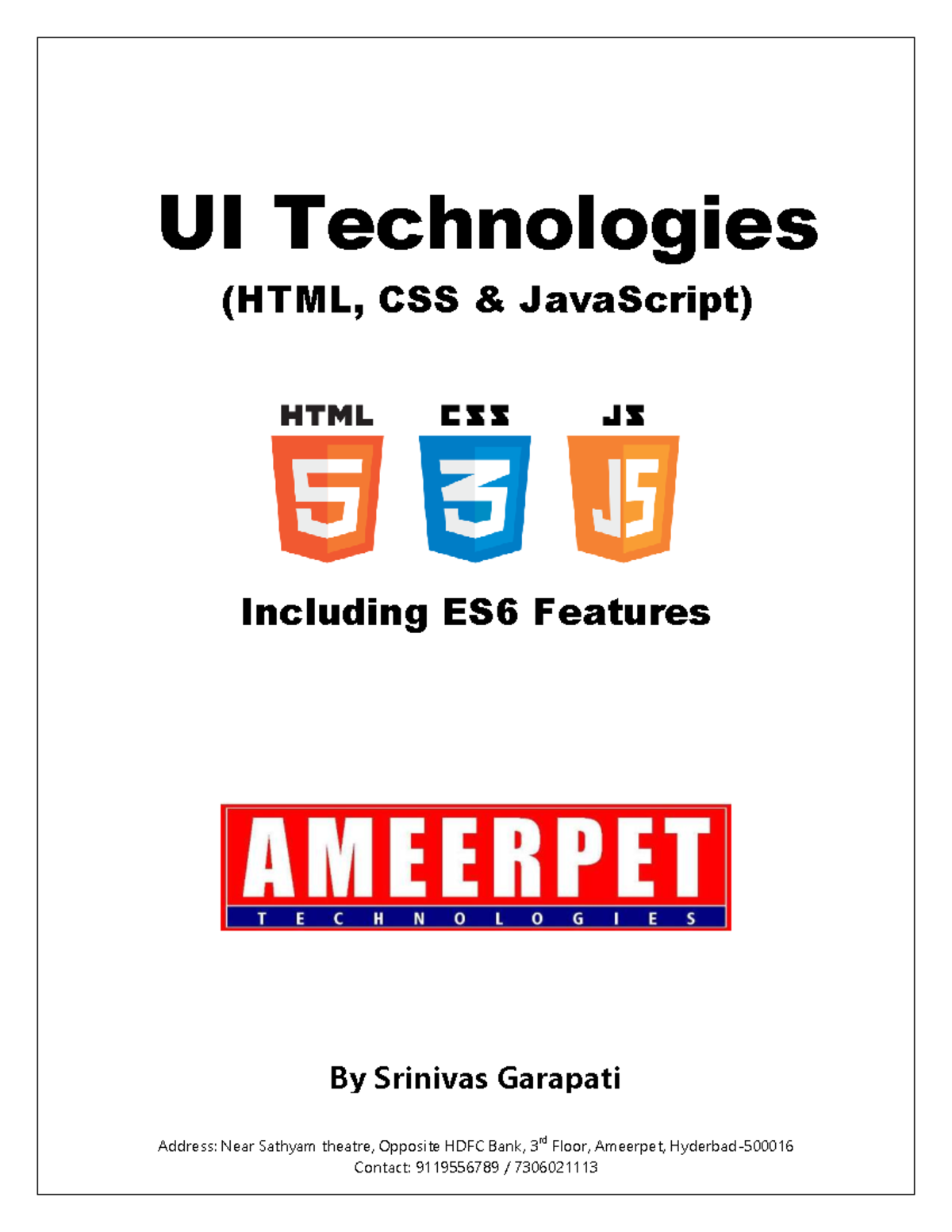 UI Technologies (HTML, CSS, JS) Overview & ES6 Features - Notes - Studocu
