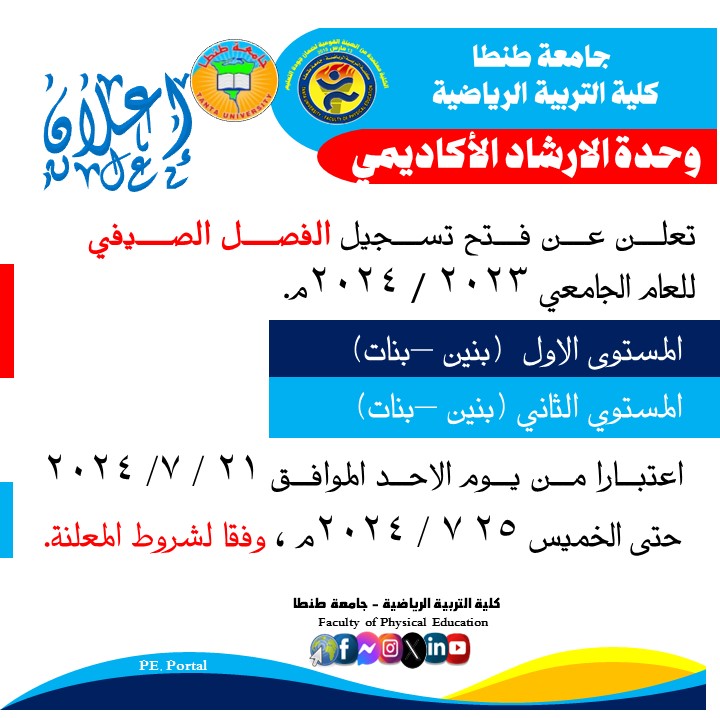 فتح التسجيل بالفصل الصيفي للعام الجامعي ٢٠٢٣ / ٢٠٢٤ للمستوى الاول والثاني