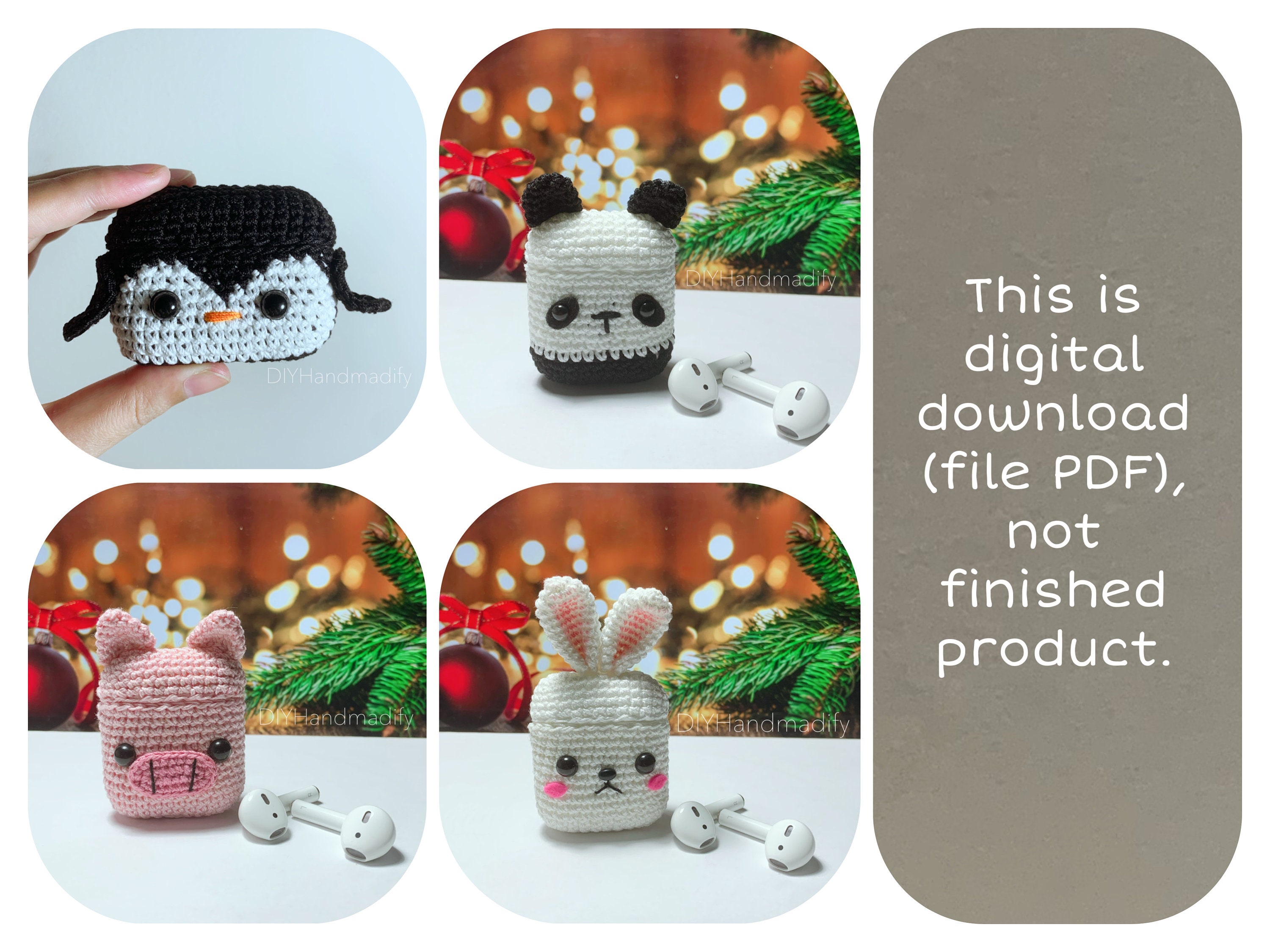 Crochet Animal Airpods Case Pattern – Penguin, Panda, Pig, Bunny (PDF ...