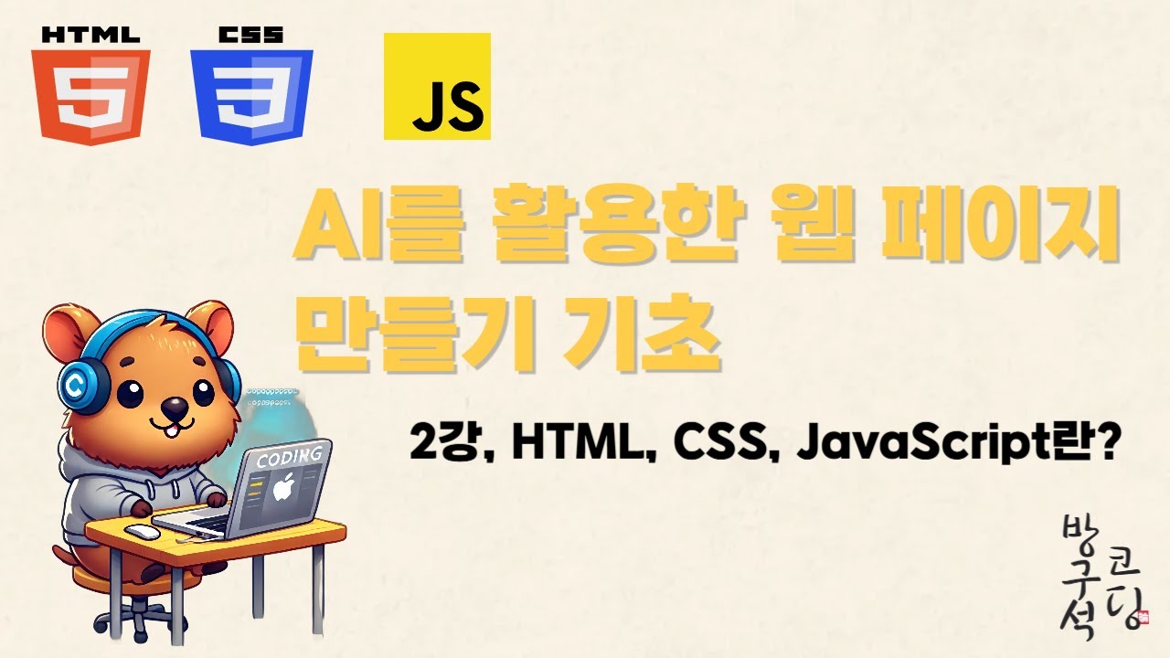 24 11 30, AI를 활용한 웹 페이지 만들기 기초, 2강, HTML, CSS, JavaScript란? - YouTube