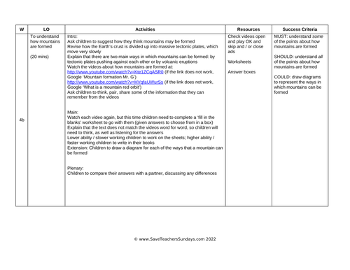 Mountain Formation Lesson Plan and Worksheets | Teaching Resources