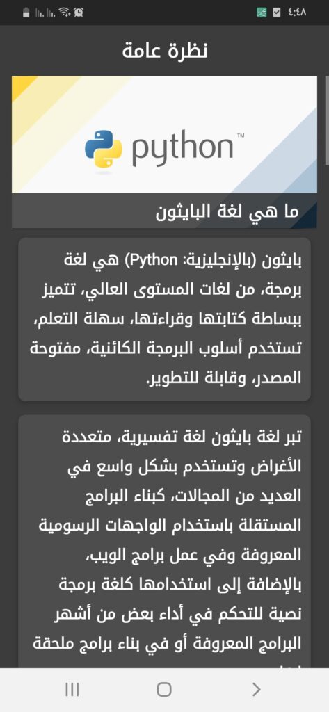 تعلم بايثون بالعربي APK للاندرويد تنزيل