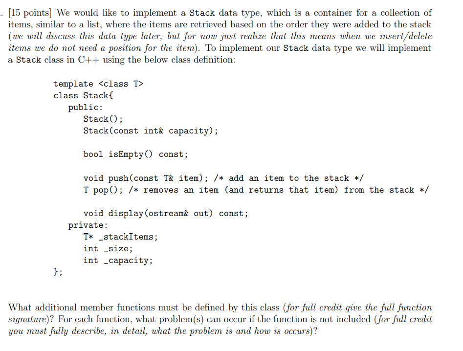 Solved . [15 points] We would like to implement a Stack data | Chegg.com