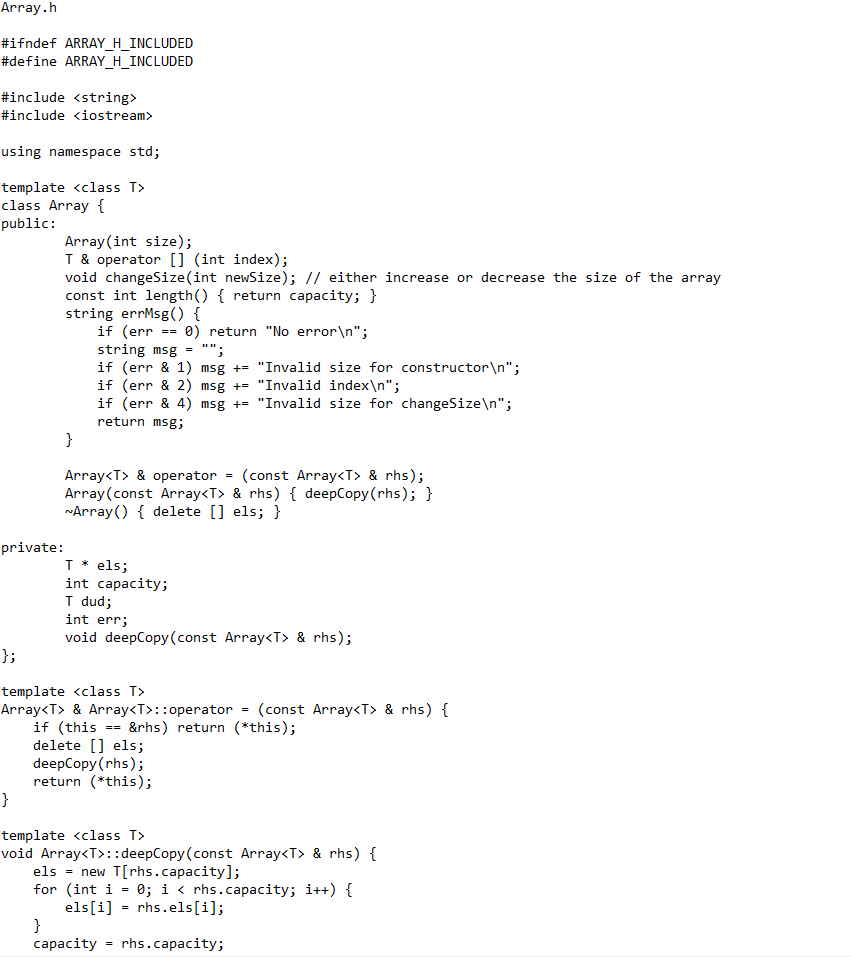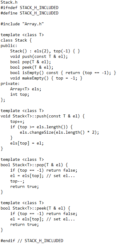 Solved \} //Array based implementation of a Stack ADT class | Chegg.com