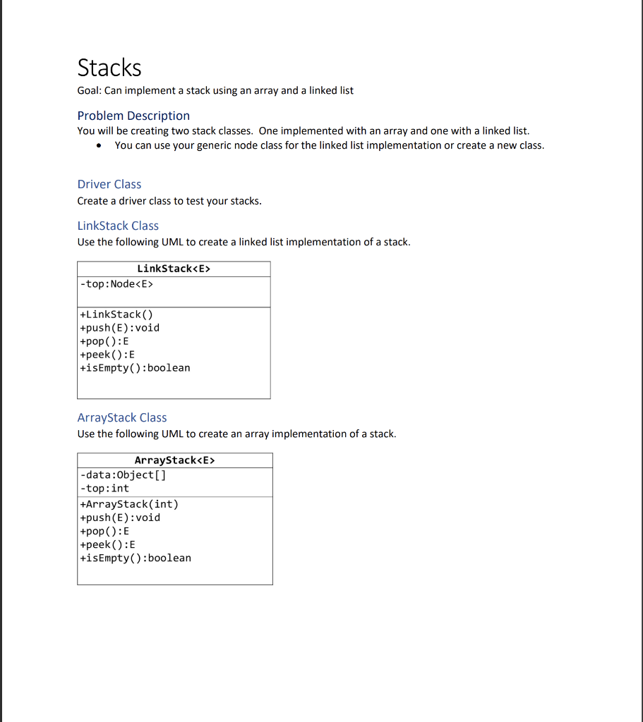 Solved Using stacks (LinkedStack and ArrayStack data | Chegg.com